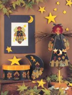 Whimsical spring and summer designs... angel, bunny, cat, little girls, birdhouse, sampler. Designs are shown painted on a variety of surfaces, but can be painted on any surface of your choice.